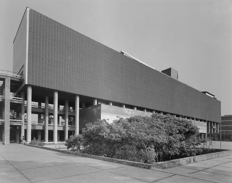 Fotografía. Toma desde la explanada de la Facultad de Medicina, vista del lado lateral de la Facultad de Medicina, en segundo plano se ve la Facultad de Química